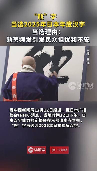 据环球网:据日本共同社12日报道,日本年度汉字在京都清水寺揭晓,2025年的年度汉字为“熊”。